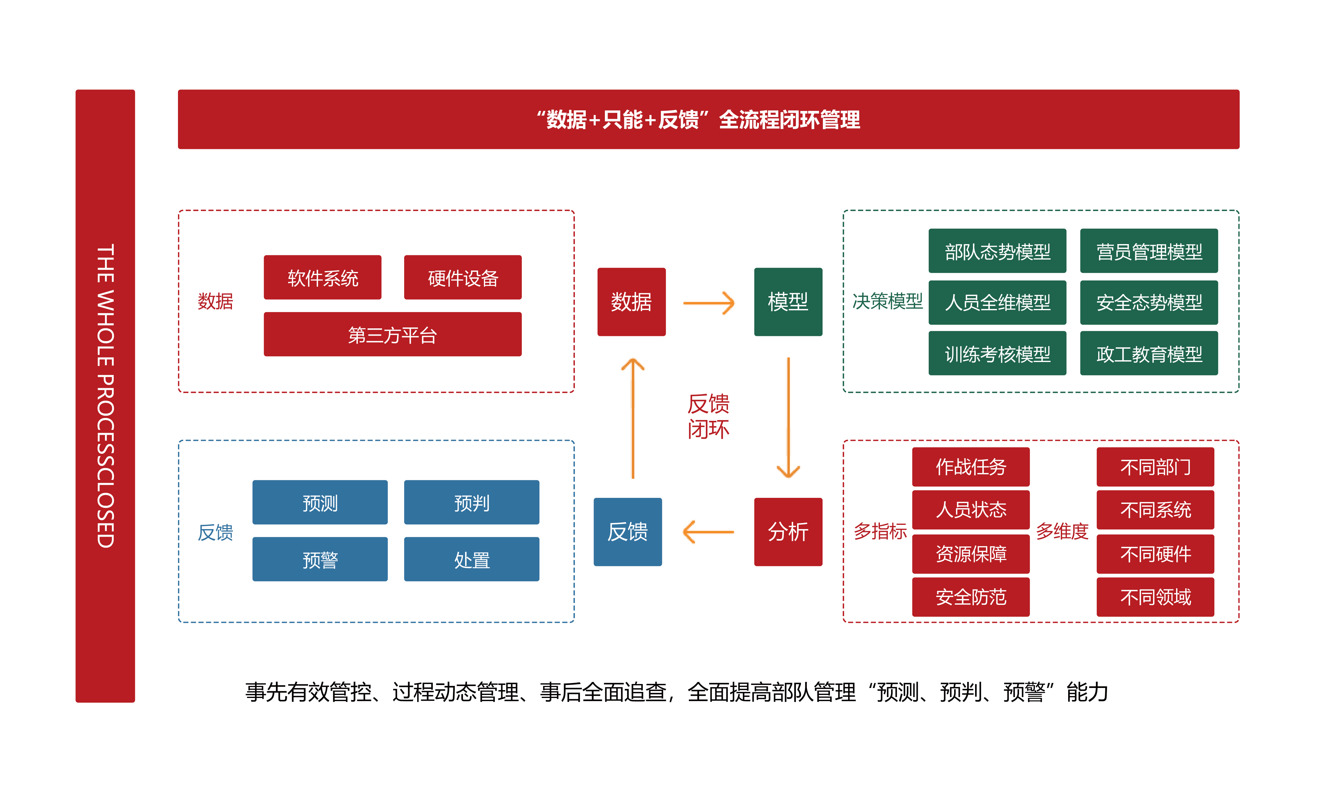 智慧軍營建設是以“三融五跨”為指引,以數據資源為核心,促進軍隊業務管理方式轉型升級的新路徑、新模式、新形態。 理念上要新,更加注重以人為本 / 機制上要新,更加注重統籌協調 / 監管上要新,更加注重安全可控